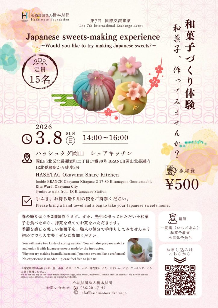 第7回 国際交流事業*3/8「和菓子づくり体験」のご案内